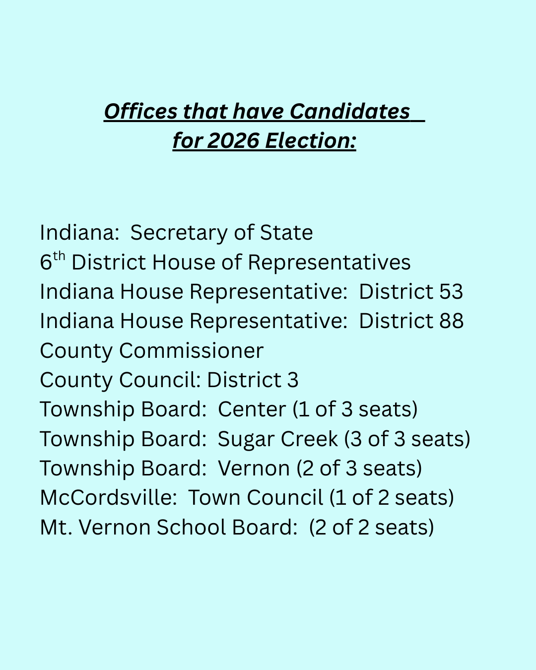 The Hancock County Democratic Party proudly acknowledges Democratic candidates running in the 2026 Primary Election.