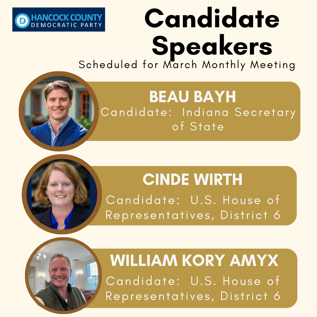 In March and April, we’ll be highlighting our Primary‑contested 6th District candidates. Most of our local candidates are also expected to be there and available to talk with attendees.
