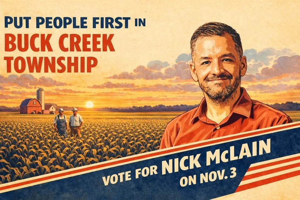 If elected, I'll work with the Buck Creek Township Trustee to ensure an honest and open operation that serves as a good steward of your taxpayer dollars. If you vote for me on November 3, I promise to always listen to you before the moneyed interests.